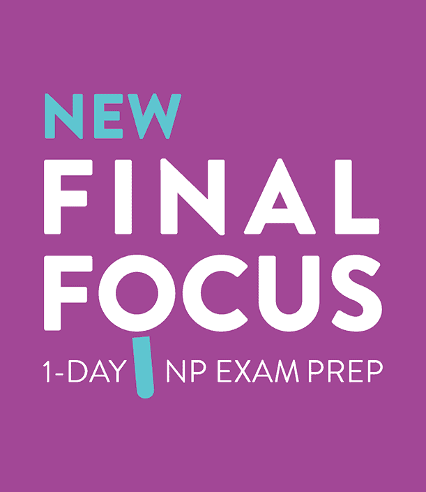 Our NEW Final Focus 1-Day NP Exam Prep program is designed for candidates nearing their exam date who want to review important clinical concepts, reinforce exam strategies, and build confidence before test day.